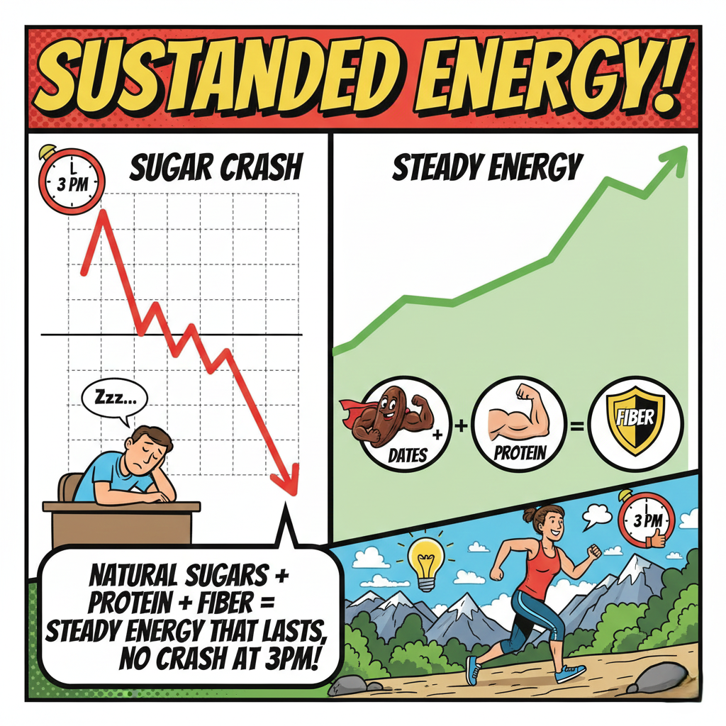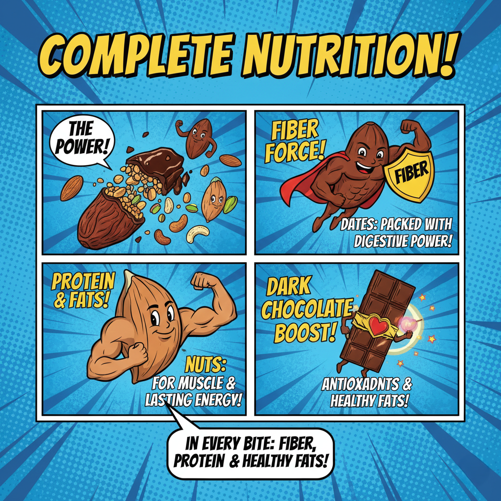 Dates, premium nuts, and dark chocolate combine for fiber, protein, and healthy fats in every bite.