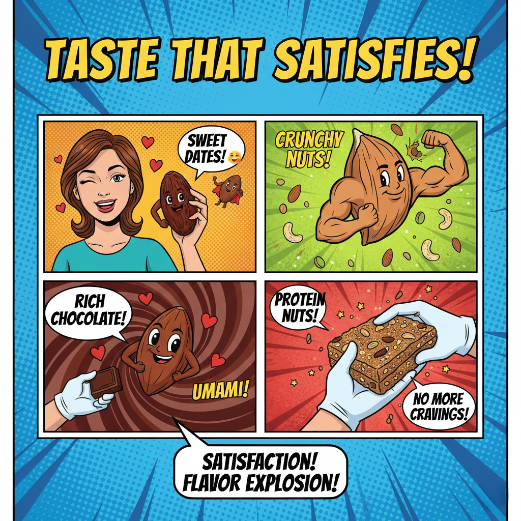Sweet dates, crunchy nuts, rich chocolate - every bite delivers flavor that truly satisfies your cravings.